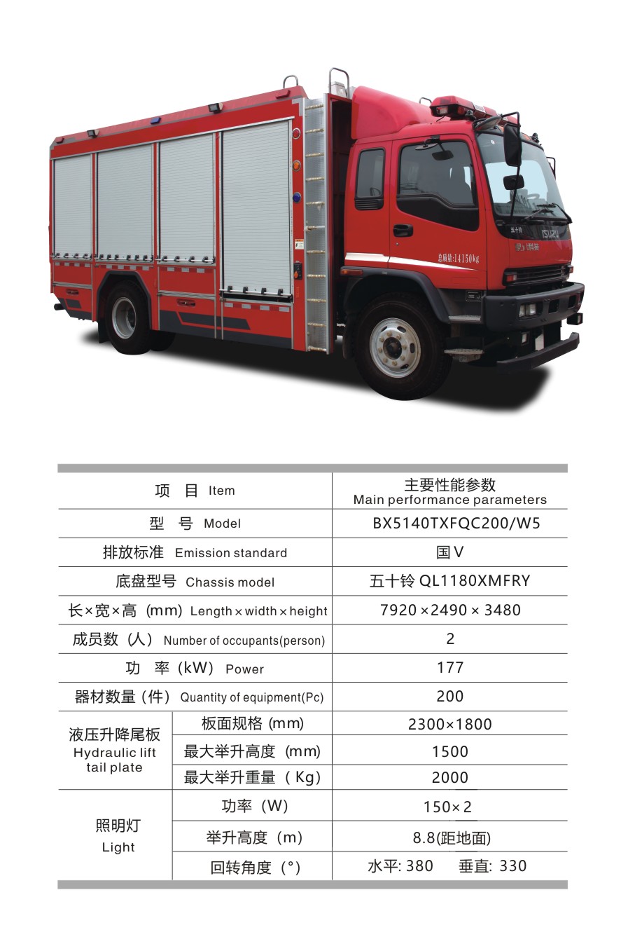 BX5140TXFQC200/W5 器材消防車