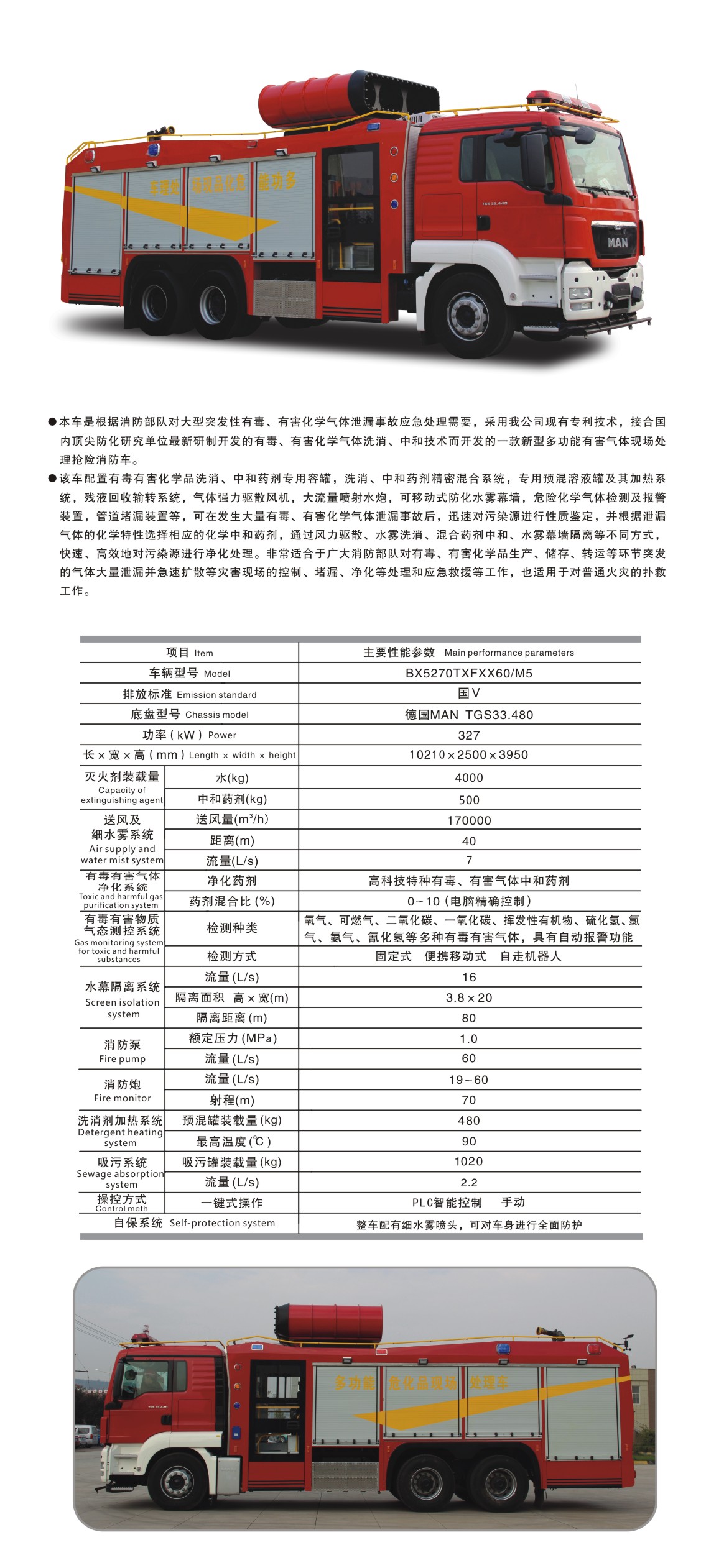 BX5270TXFXX60/M5 危化品現(xiàn)場(chǎng)處理消防車