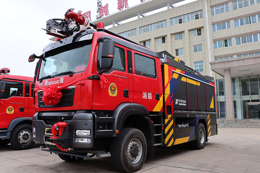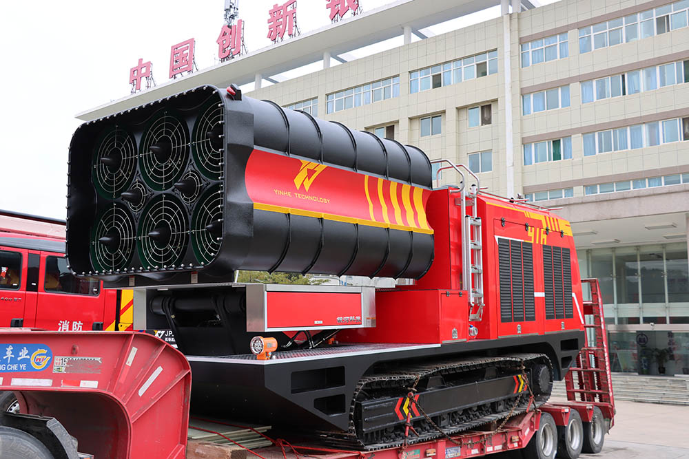 新研發的履帶排煙消防車、壓縮空氣泡沫無人機多功能消防車、JY160/HT6搶險救援消防車、機場高壓噴霧快調消防車在全體銀河人的熱烈掌聲和燃放的鞭炮場中,有序的發車起運。